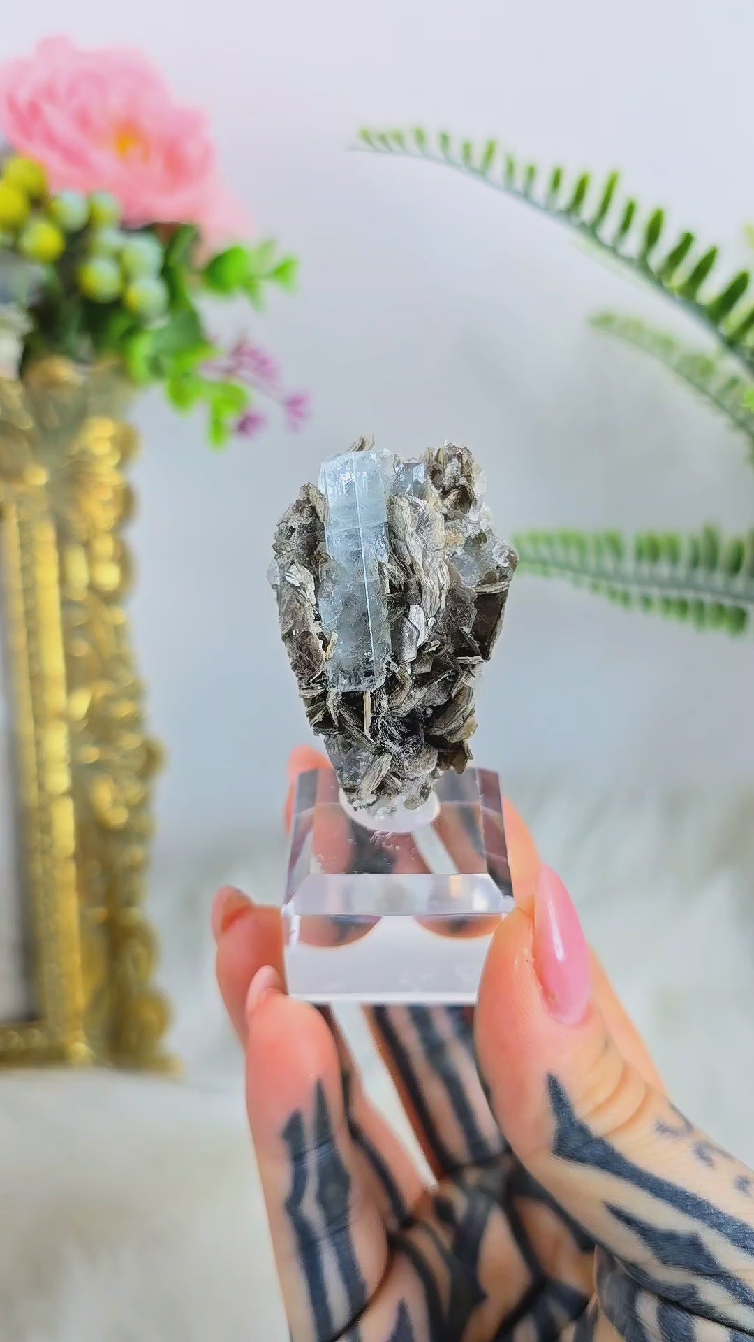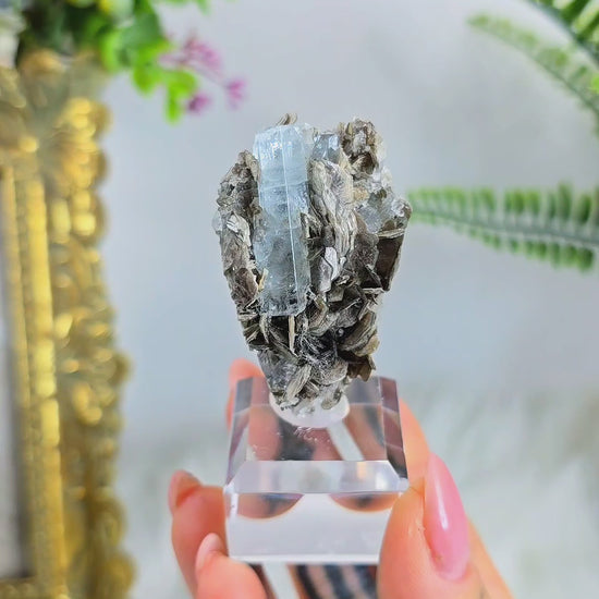 Aquamarine on Muscovite 04 – Premium Beryl Specimen from Pakistan on Clear Display Base