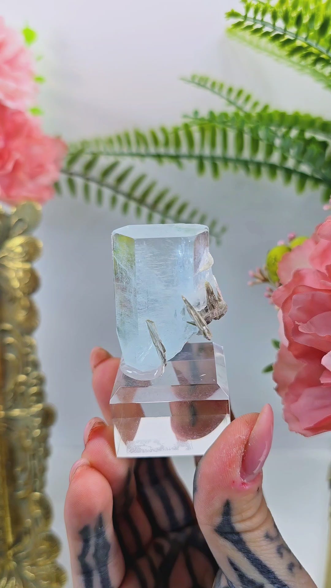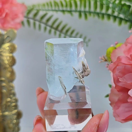 Aquamarine with Muscovite 09 – Fine Beryl Mineral Specimen on Clear Base