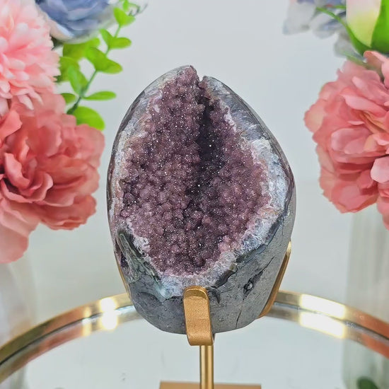 Elevate your home décor with a one-of-a-kind natural treasure: this Rainbow Amethyst piece from Uruguay — elegantly mounted on a stand — blends raw geological beauty with refined presentation. Perfect for collectors, interior lovers, and crystal enthusiasts alike.