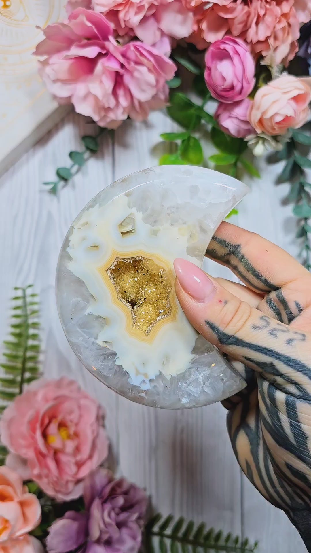 Druzy Agate Moon on stand CM331