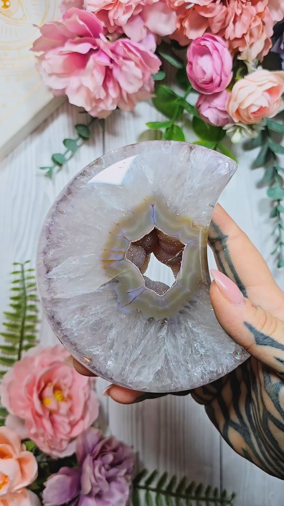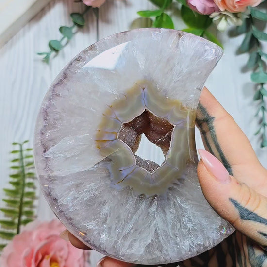 Druzy Agate Moon on stand CM337