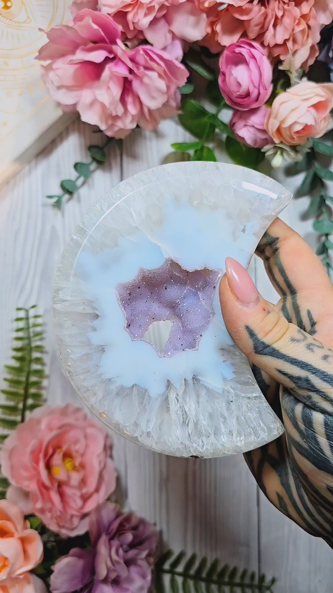 Druzy Agate Moon on stand CM339