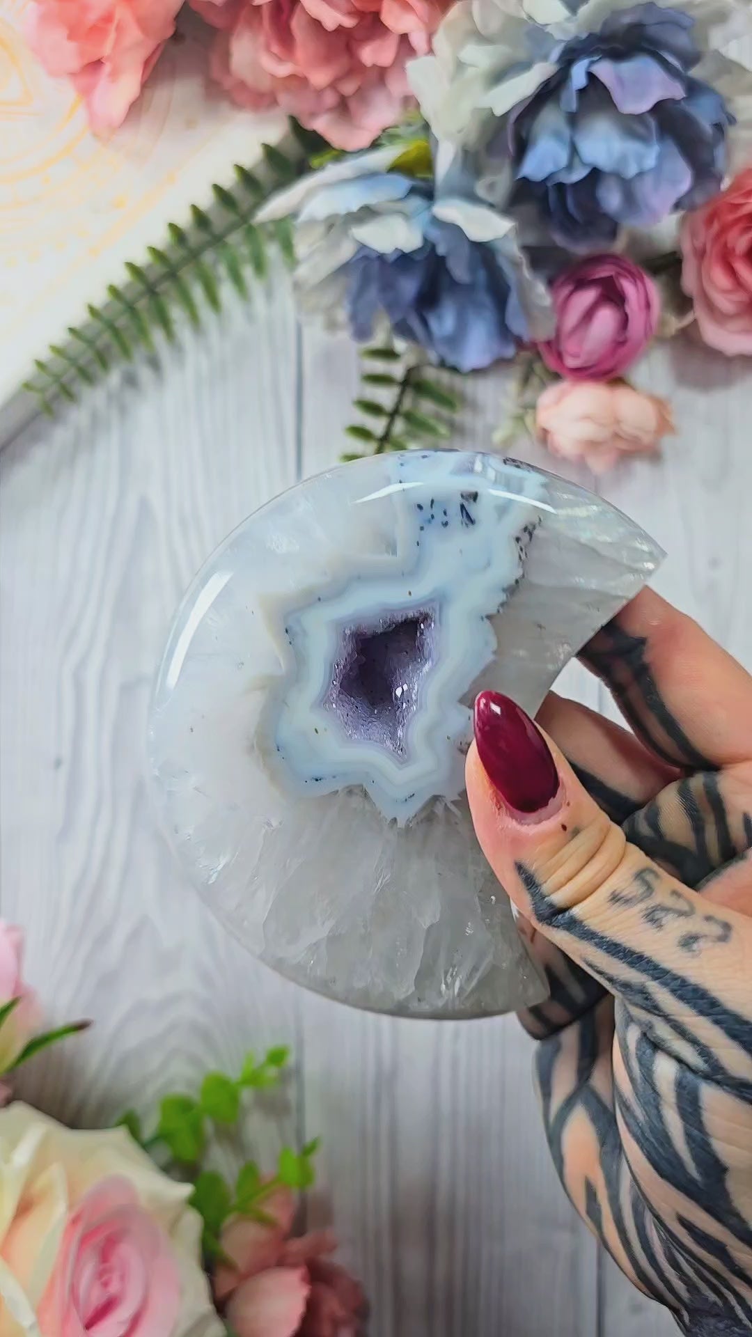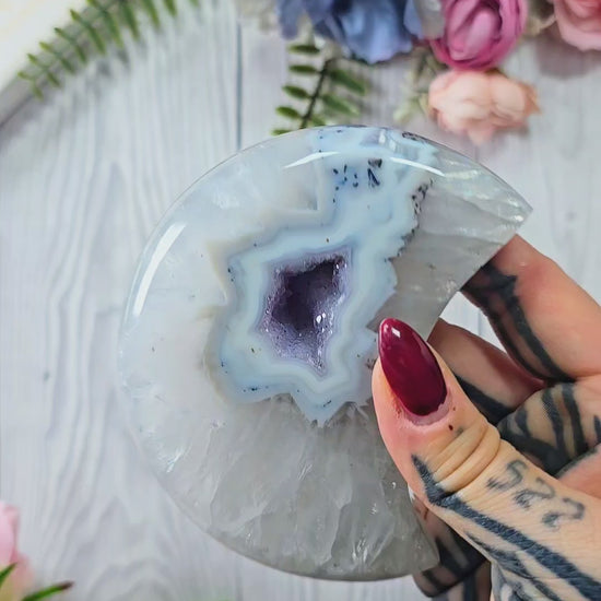 Druzy Agate Moon on stand CM343