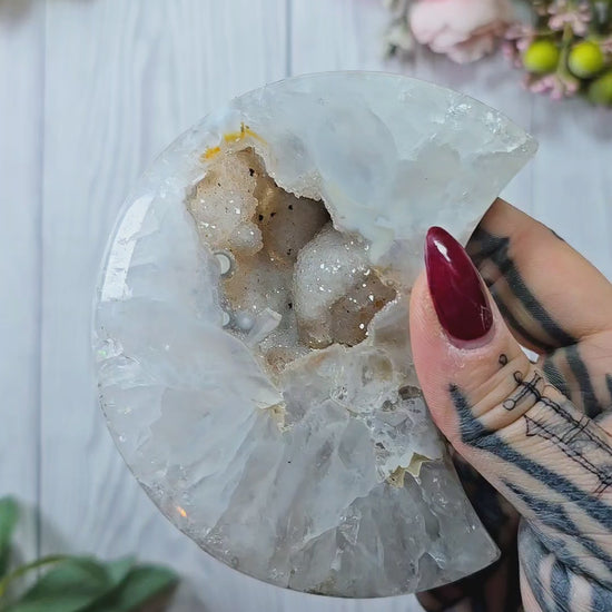 Druzy Agate Moon on stand CM350