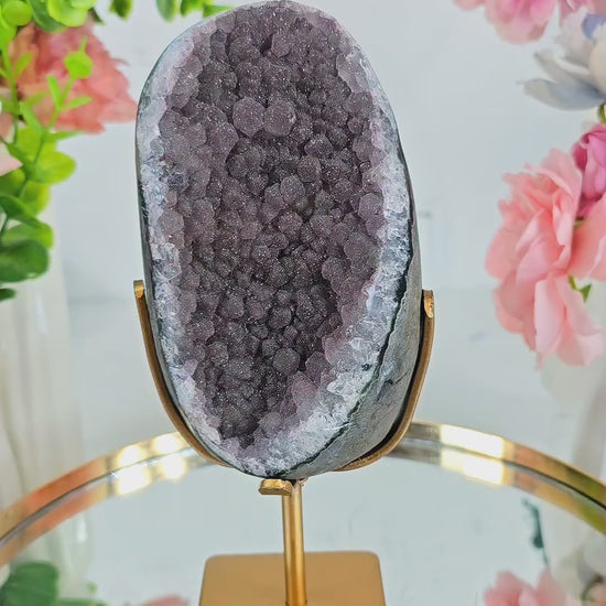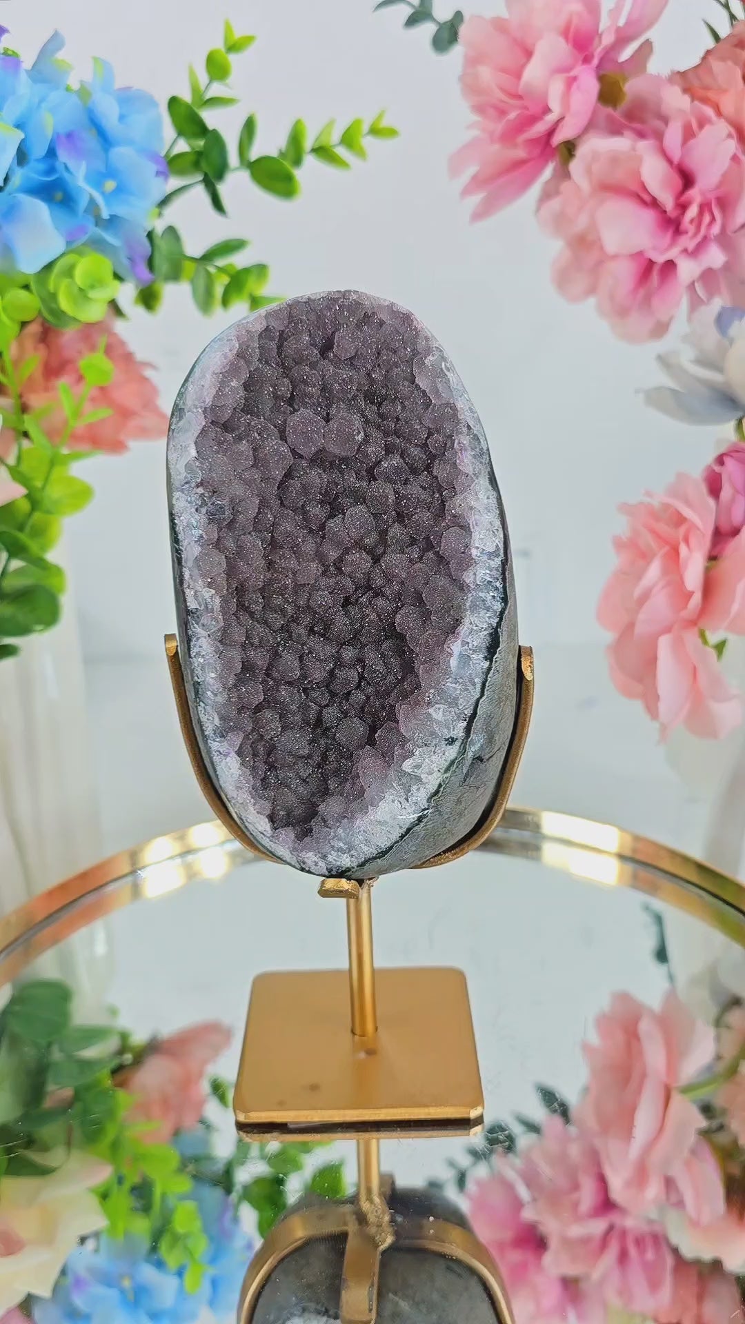 Elevate your home décor with a one-of-a-kind natural treasure: this Rainbow Amethyst piece from Uruguay — elegantly mounted on a stand — blends raw geological beauty with refined presentation. Perfect for collectors, interior lovers, and crystal enthusiasts alike.