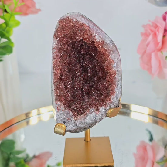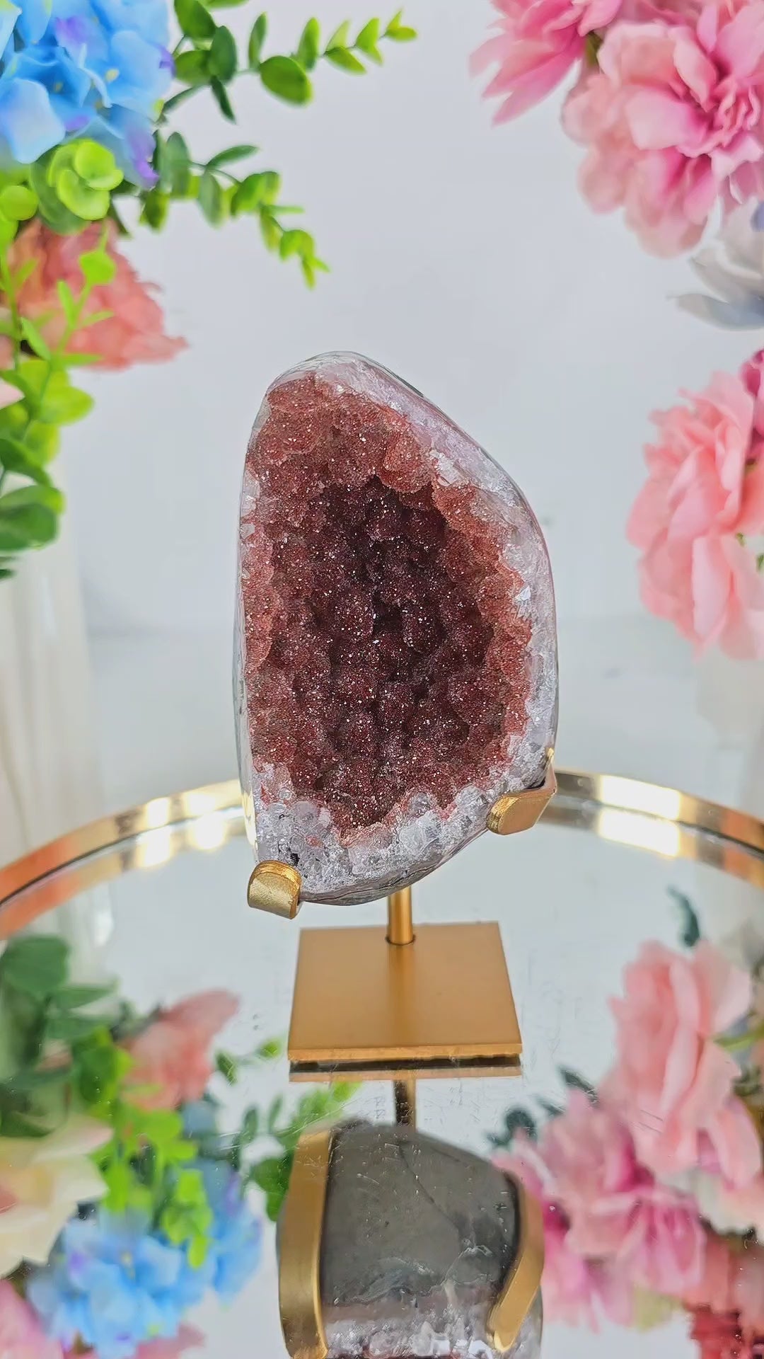 Red Sugar Druzy Rainbow Amethyst Piece on Stand 86 — Natural Mineral Statement Piece