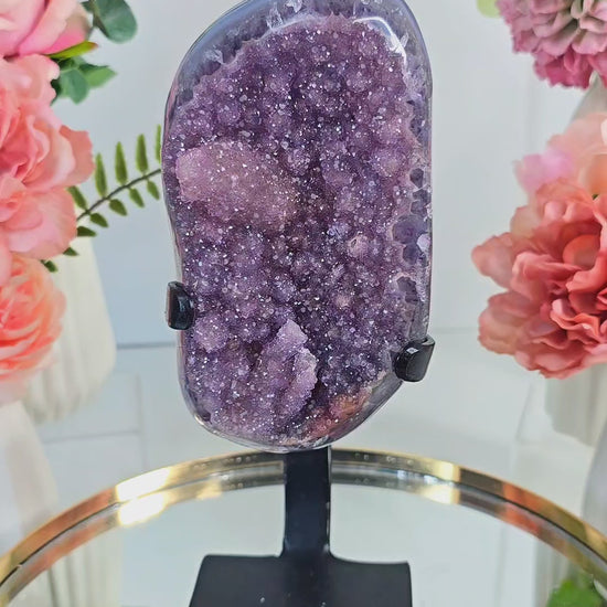 Sugary Rainbow Amethyst / Calcite Piece on Stand 62