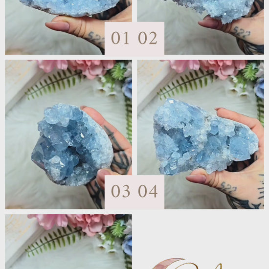 Bring a piece of natural elegance into your home with this Celestite Cluster from Madagascar. Known for its delicate sky-blue crystals and clean aesthetic, Celestite is a favorite among collectors, decorators, and crystal enthusiasts. Each piece is one-of-a-kind and photographed individually — you will receive exactly the specimen you select.