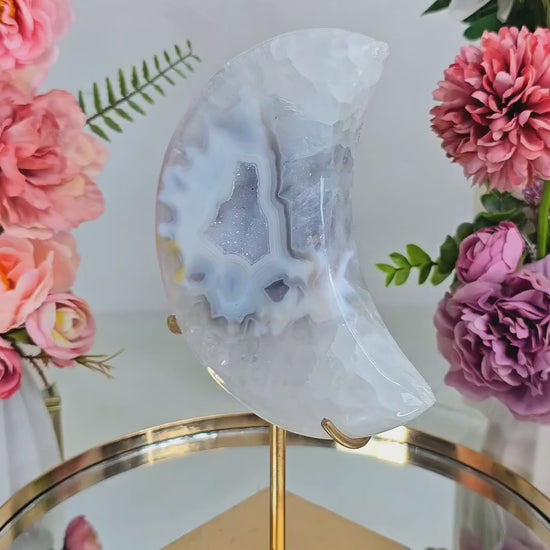 Druzy Agate Moon on stand CM307
