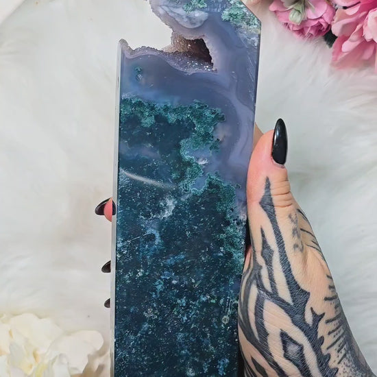Druzy Moss Agate / Jasper Tower CT709