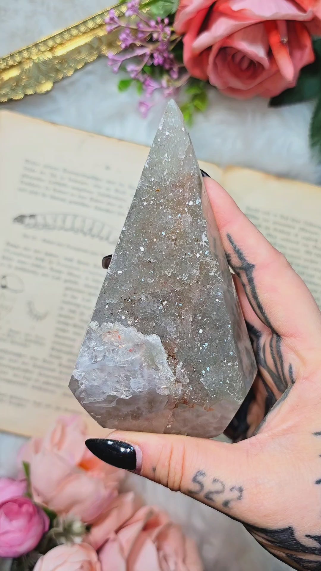 Druzy Quartz Flame / Pyramid / Diamond shape