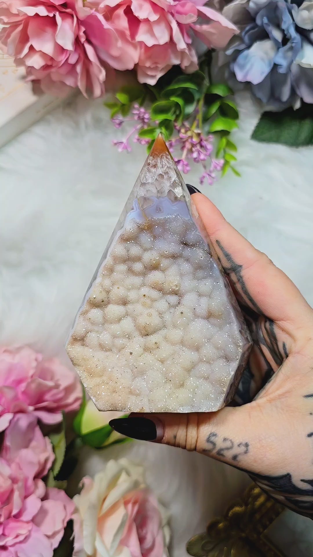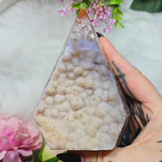 Druzy Agate Flame / Pyramid / Diamond shape on stand D09