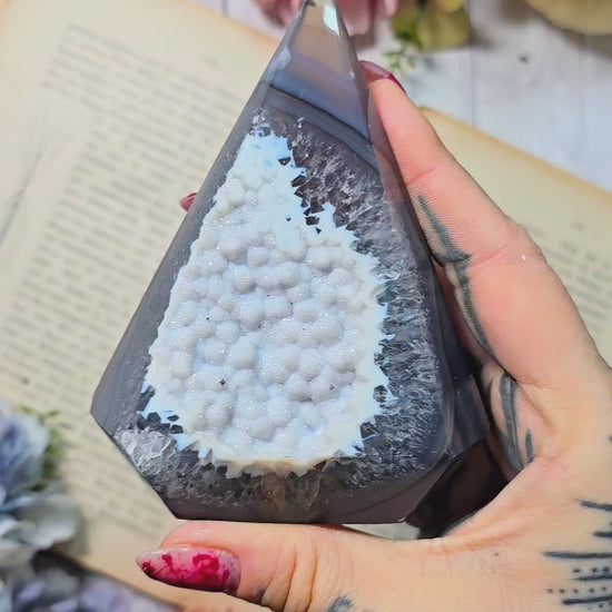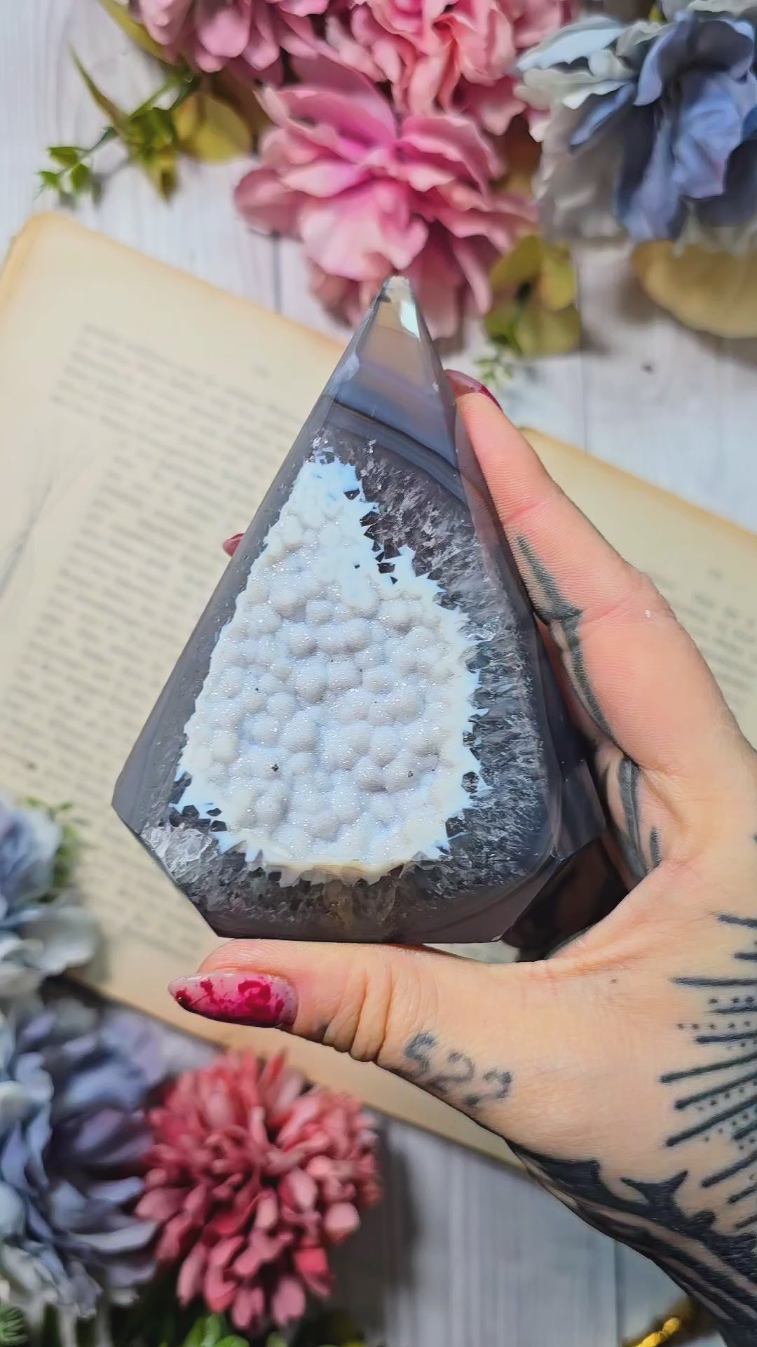 Druzy Agate Flame / Pyramid / Diamond shape on stand D27