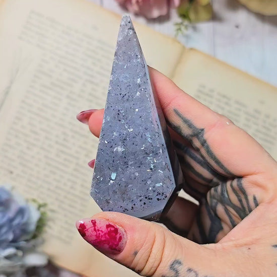 Druzy Agate Flame / Pyramid / Diamond shape on stand D24