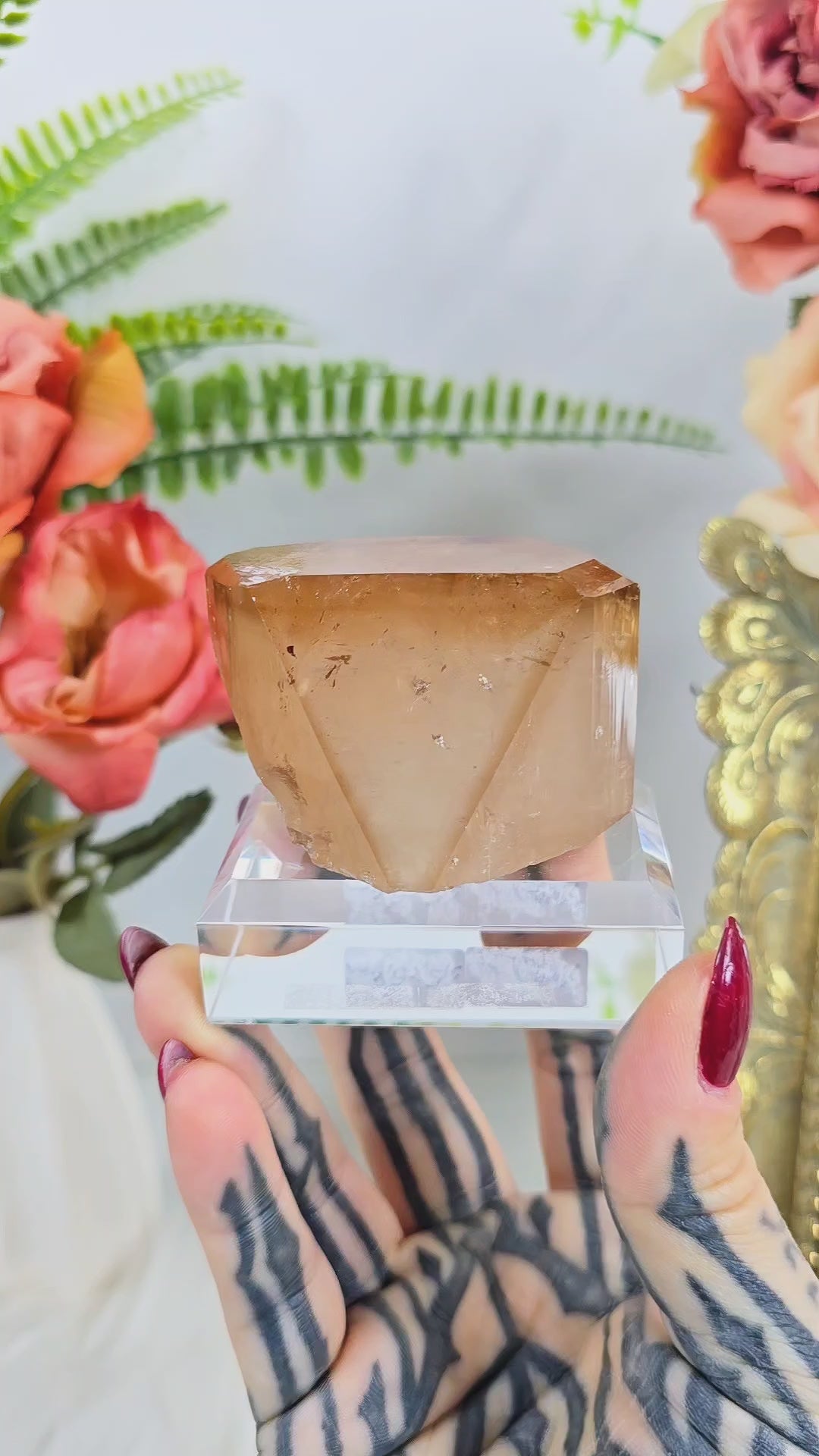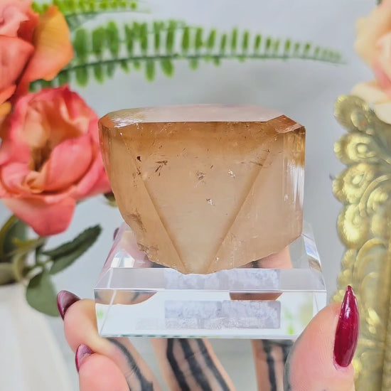 This elegant natural Topaz specimen features a well-formed crystal from the Skardu region of Pakistan, professionally mounted on a clear display base for effortless presentation. Topaz is a highly collectible silicate mineral, admired for its vitreous luster, prismatic crystal habit, and impressive durability.