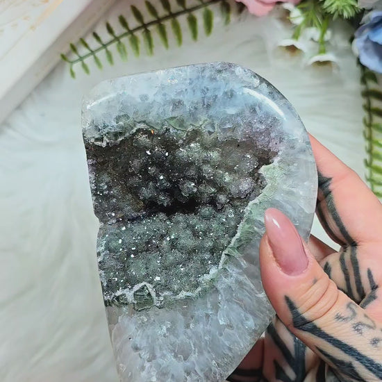 • Unique Geological Formation – Natural color gradients, crystal bands and cavernous structures make each piece unique — no two are identical.