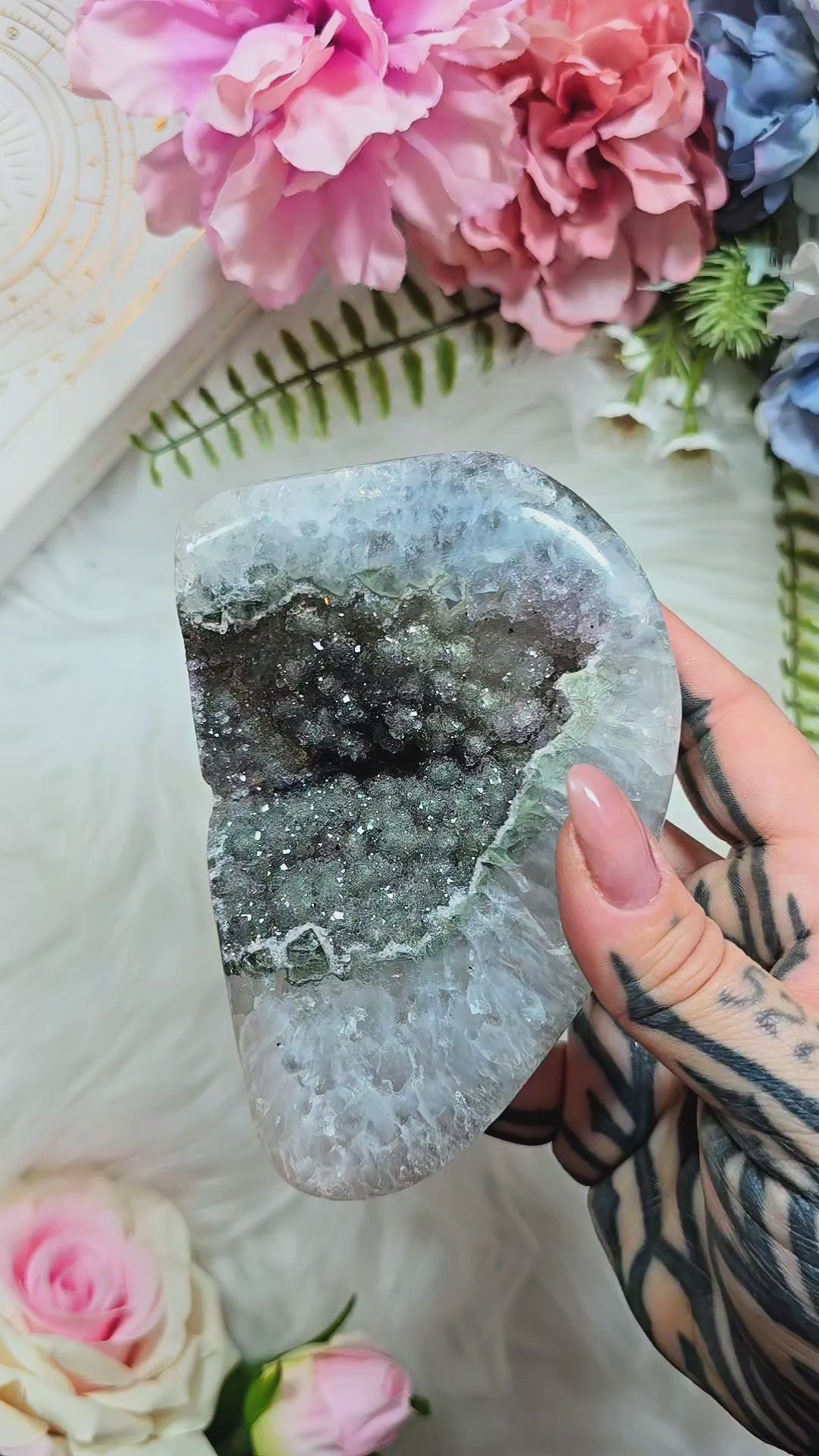 Elevate your home décor with a one-of-a-kind natural treasure: this Rainbow Amethyst piece from Uruguay — elegantly mounted on a stand — blends raw geological beauty with refined presentation. Perfect for collectors, interior lovers, and crystal enthusiasts alike.