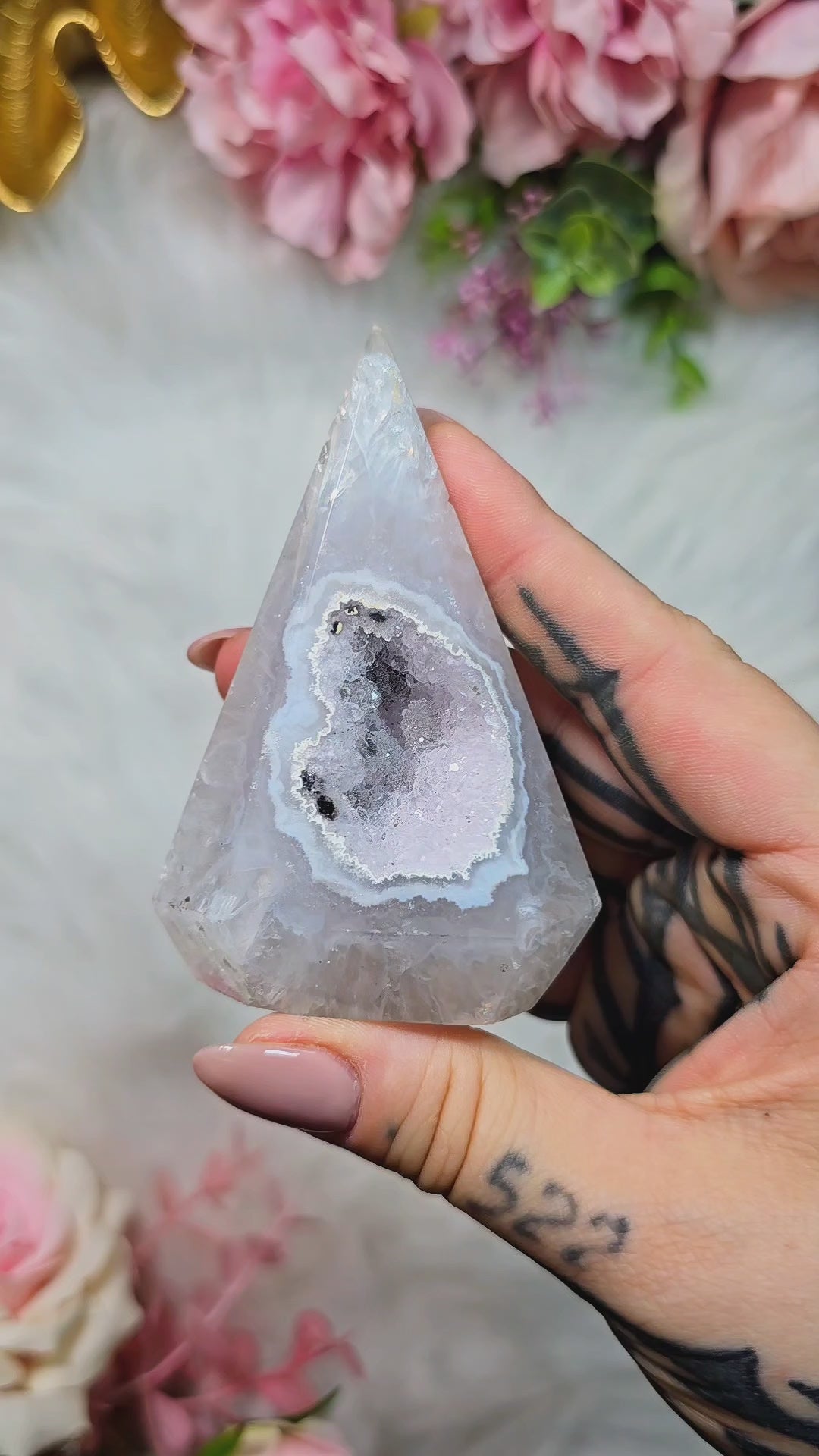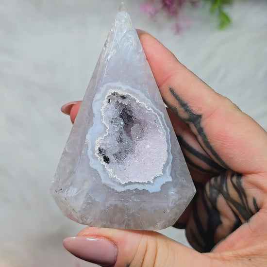 Druzy Agate Flame / Pyramid / Diamond shape on stand D16
