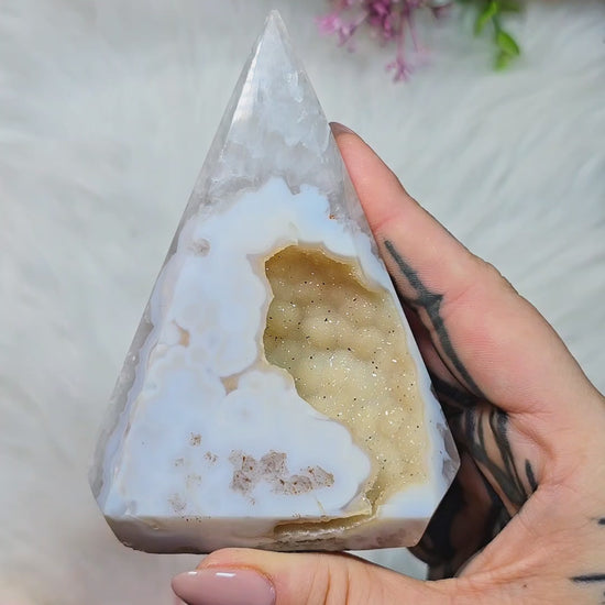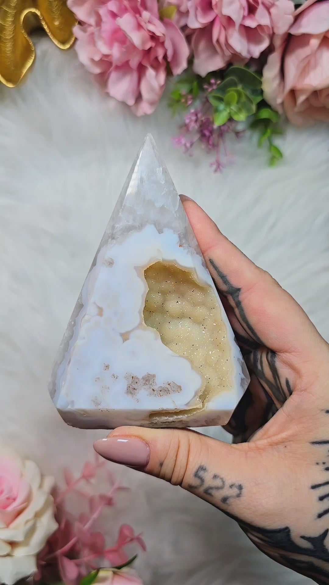 Druzy Agate Flame / Pyramid / Diamond shape on stand D17