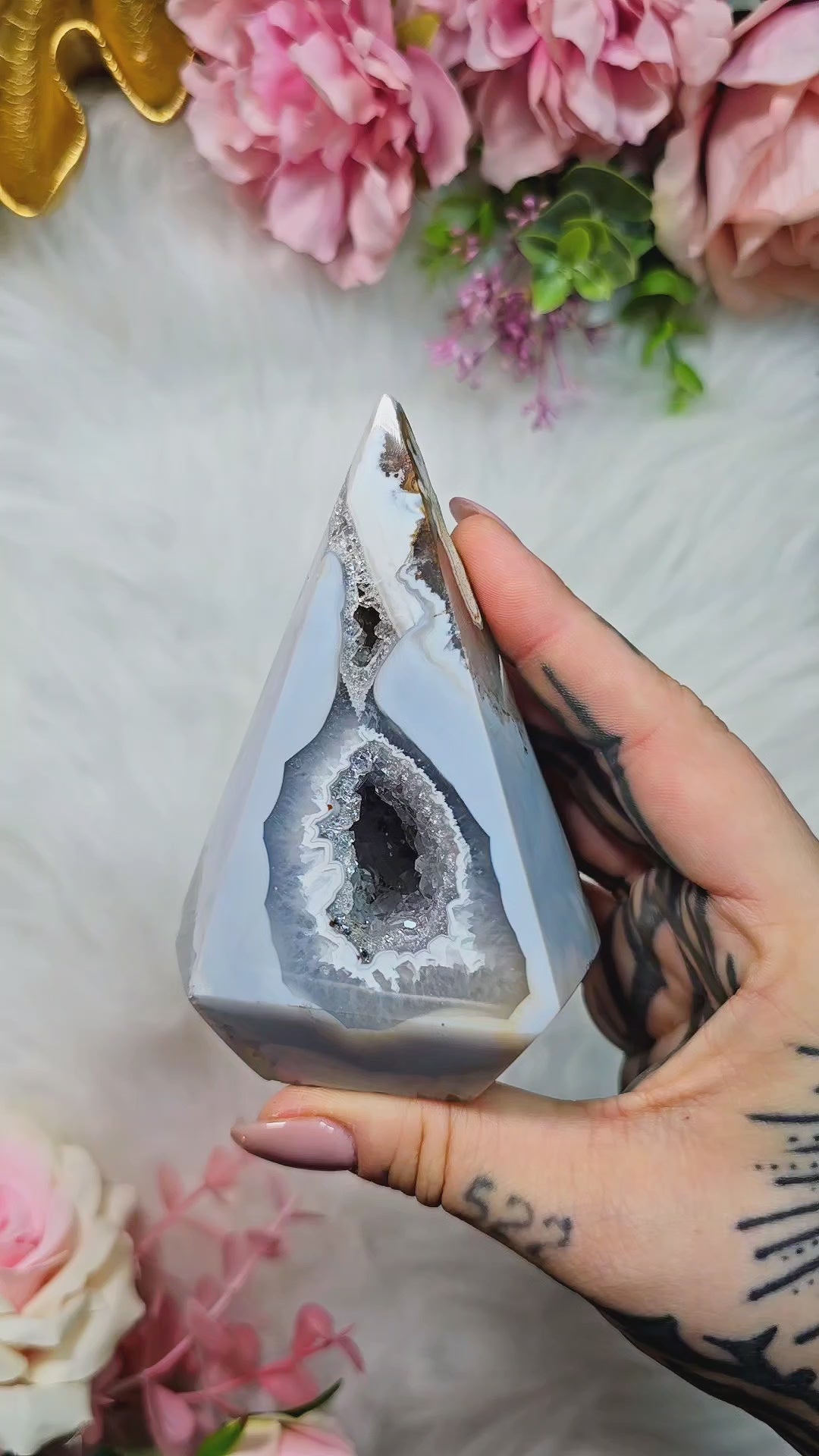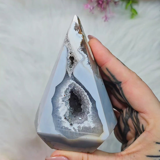 Druzy Agate Flame / Pyramid / Diamond shape on stand D18
