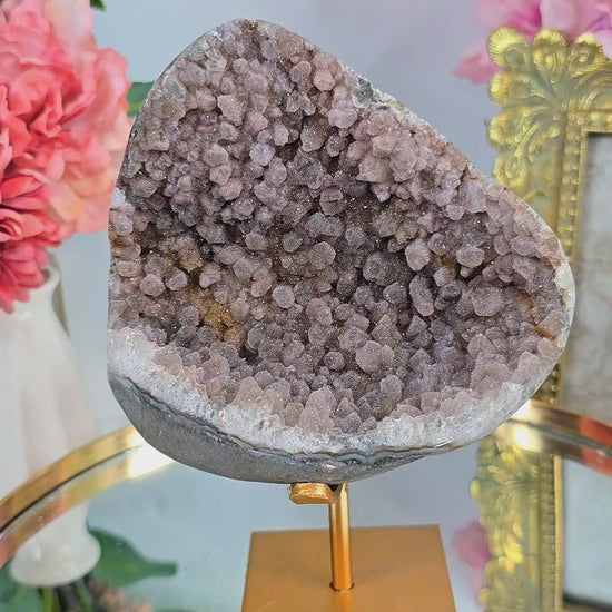 Elevate your home décor with a one-of-a-kind natural treasure: this Rainbow Amethyst piece from Uruguay — elegantly mounted on a stand — blends raw geological beauty with refined presentation. Perfect for collectors, interior lovers, and crystal enthusiasts alike.