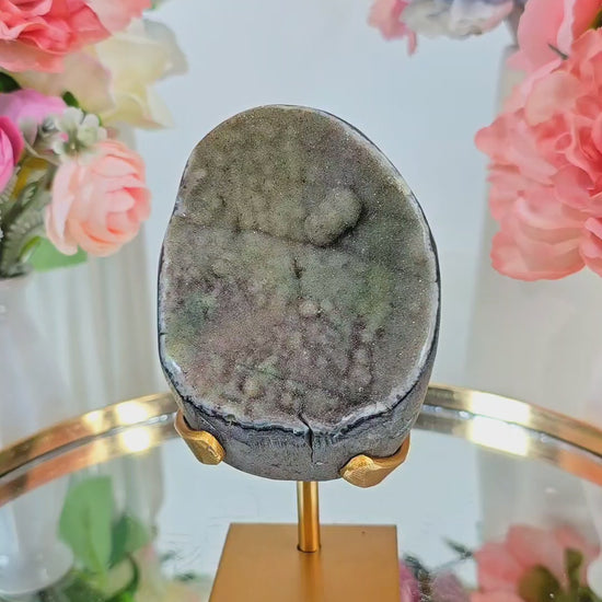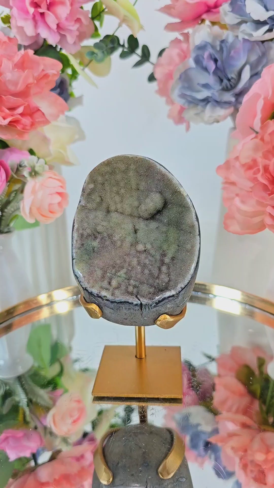 Elevate your home décor with a one-of-a-kind natural treasure: this Rainbow Amethyst piece from Uruguay — elegantly mounted on a stand — blends raw geological beauty with refined presentation. Perfect for collectors, interior lovers, and crystal enthusiasts alike.