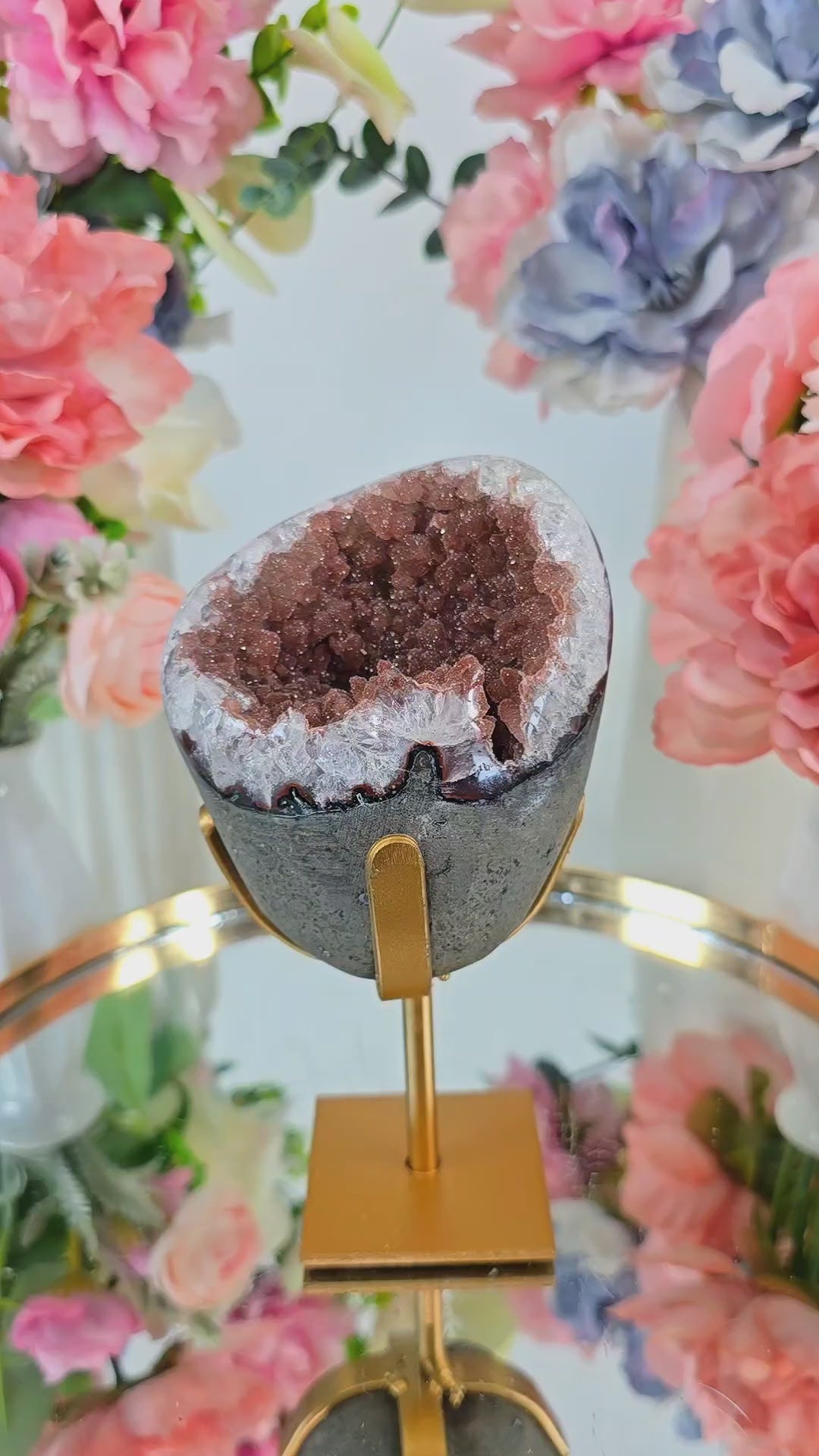 Elevate your home décor with a one-of-a-kind natural treasure: this Rainbow Amethyst piece from Uruguay — elegantly mounted on a stand — blends raw geological beauty with refined presentation. Perfect for collectors, interior lovers, and crystal enthusiasts alike.